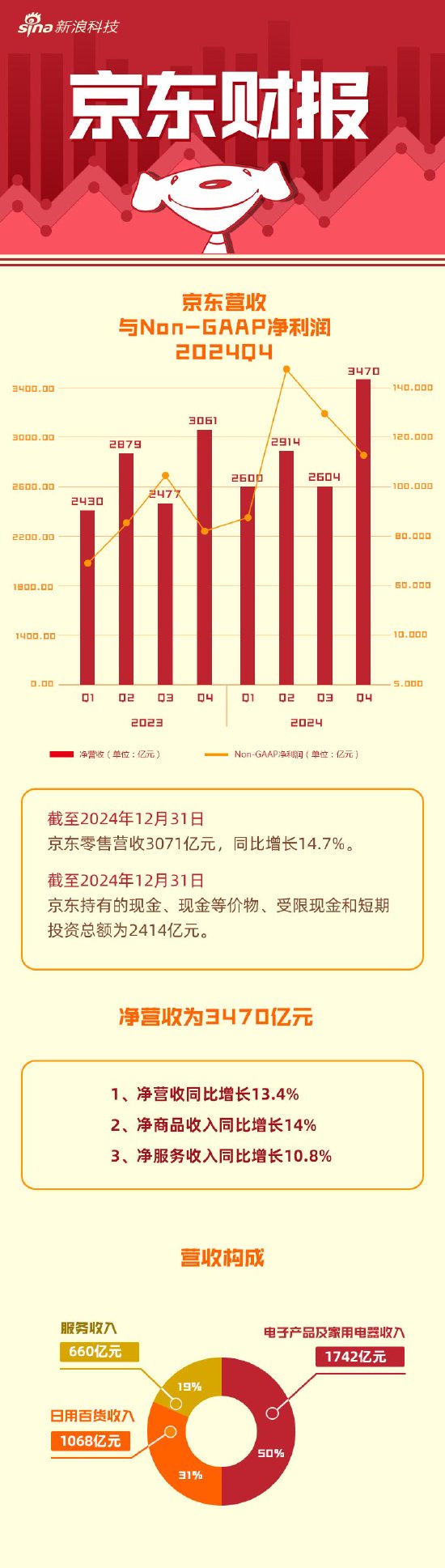 相关新闻:京东第四季度营收3470亿元 经调净利润113亿元