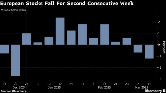 随着与美国的贸易紧张局势加剧,欧洲股市现已连续第二周下跌。周四,美国总统唐纳德·特朗普威胁要对来自欧盟的葡萄酒、香槟和其他酒精饮料征收200%的关税。