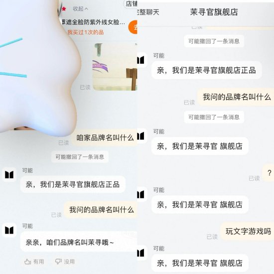 6月5日,《5D调查》在小红书平台发现,有消费者反映在购买防晒产品时遭遇了“文字游戏”。该网友称其在平台询问一家名为“茉寻官旗舰店”的店铺品牌名称时,客服回复是“茉寻官旗舰店正品”,再次追问品牌名,客服答称“茉寻官 旗舰店”。此举引发网友强烈不满,认为商家玩文字游戏,蓄意模糊品牌信息。评论区不少网友晒出订单截图,纷纷表示“上当”。有买家痛陈:“衣服质量很差,拉链刚拿回来就坏了”,“我说质量怎么那么差”。查询发现,该店粉丝量达上万人,并标注“回头客4万”,迷惑性极强。