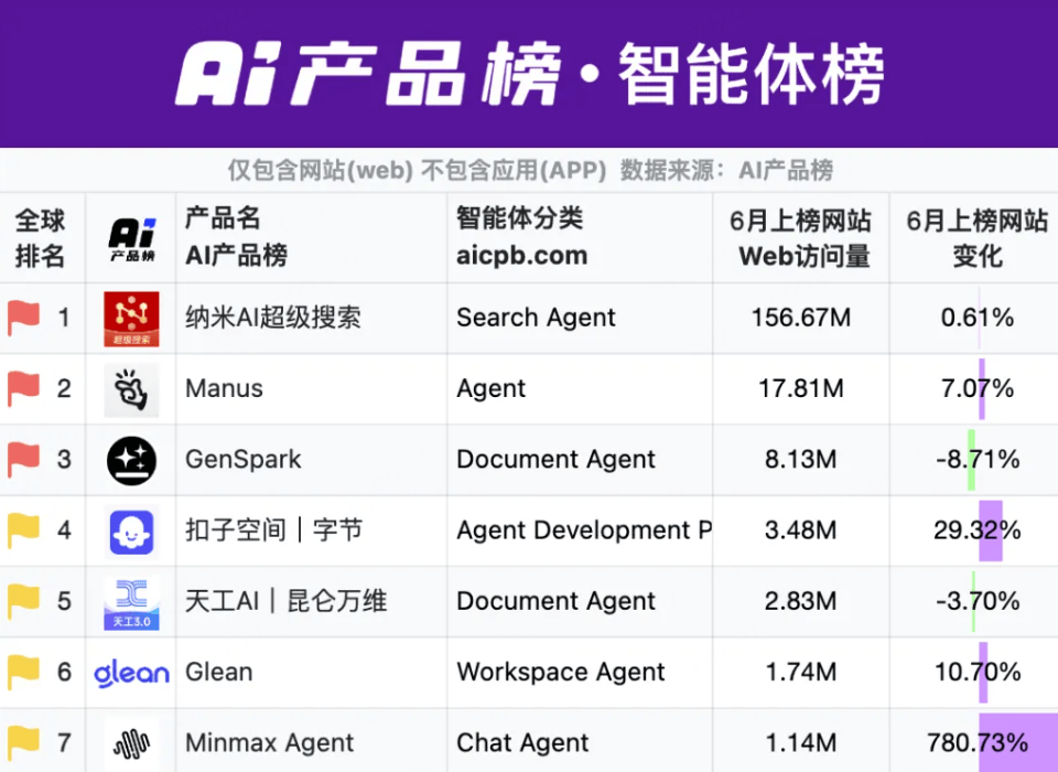 随着智能体赛道竞争白热化,市场亟需直观的行业坐标来衡量产品实力。全球 AI 产品榜 6 月榜单的发布恰逢其时,其中首次增设的 “智能体榜”,精准映照出各产品在用户中的真实认可度,为行业提供了极具价值的参照。