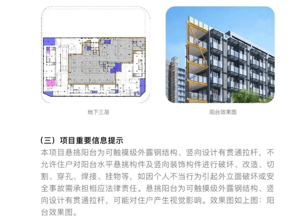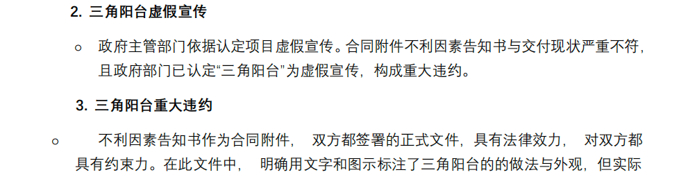 据另一位业主卢鹏介绍,购房合同明确表明三角阳台的存在,但实际建设全部改成了三角金属装饰,合同附件不利因素告知书与交付现状严重不符。