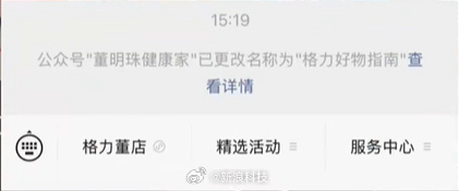 格力电器公众号再更名:从董明珠健康家改为格力好物指南