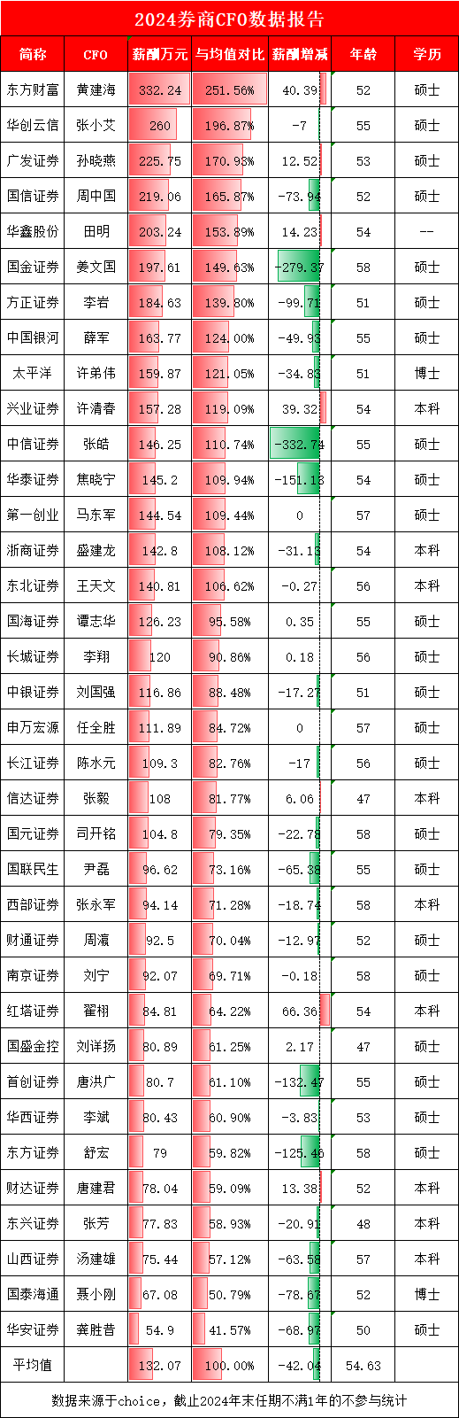 在券商行业的激烈竞争中,财务总监的专业能力是公司稳健运营的重要支柱。2024年数据显示,券商行业CFO平均薪酬为132万元,而中银证券财务总监刘国强的薪酬为117万元,约为行业平均水平的88.5%,明显低于行业CFO平均水准。