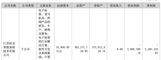2025年半年报显示,恒宝股份两家子公司江苏恒宝智能系统技术有限公司和恒宝国际有限责任公司尚未实现盈利,前者主要从事电子标签、读写机具、终端产品的研发、生产、销售及服务;后者主要负责研发、提供智能卡及相关解决方案。今年上半年,上述两家子公司的净利润分别为-348.74万元、-53.51万元,均已连续两年出现亏损。