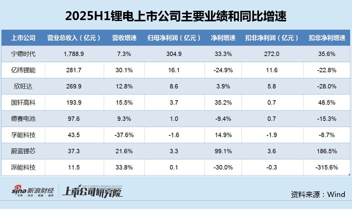 A股锂电上市公司中报披露完毕。上半年,多数企业营收实现增长,但净利润则呈现出较为明显的两级分化之势。
