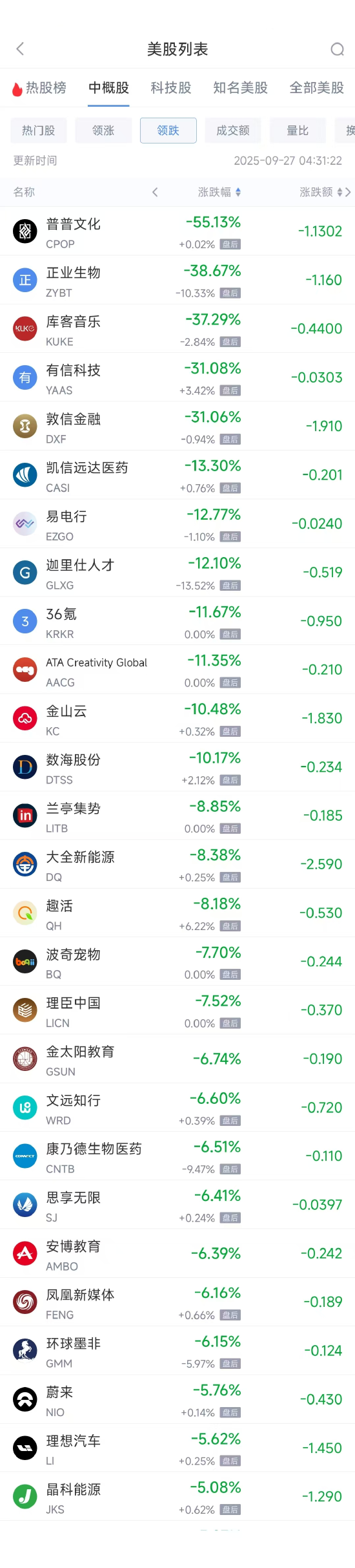 (截图来自新浪财经APP 行情-美股-中概股热门板块)下载新浪财经APP