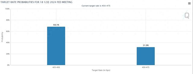 目前市场已经减少了对12月将再次降息的押注。芝商所利率观察工具显示,美联储12月维持利率不变的可能性为32%,远高于一个月前的14%。
