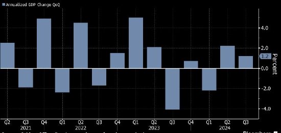 日本内阁府周一发布,日本国内生产总值(GDP)第三季度折合年率环比增长1.2%,初值为增长0.9%。经济学家之前预测上修至1.0%。增长数据更加强劲,支持日本央行经济将继续小幅扩张的观点。净出口降幅收窄,库存增速也得到上修。