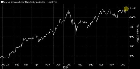 “对我们来说,台积电仍是以合理估值参与人工智能主题的最佳方式,不用挑选赢家或技术,”Financiere de L Echiquier的亚洲股票主管Kevin Net表示。下一个值得关注的催化剂将是英伟达下个月在CES 2025的讲话,以及台积电即将发布的业绩和指引。