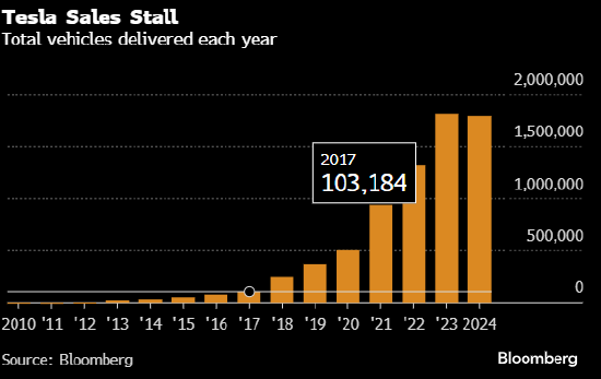 该公司周四宣布,去年销量179万辆,略低于2023年的180万辆及分析师普遍预期。