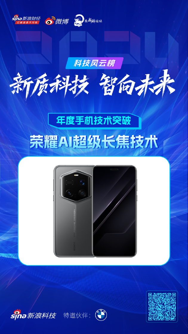 其中,荣耀AI超级长焦技术获得新浪2024科技风云榜——【年度手机技术突破】。