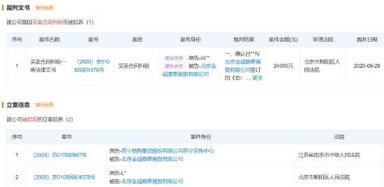 2020年09月29日,该公司曾因买卖合同纠纷而被起诉,涉案金额为24000元。
