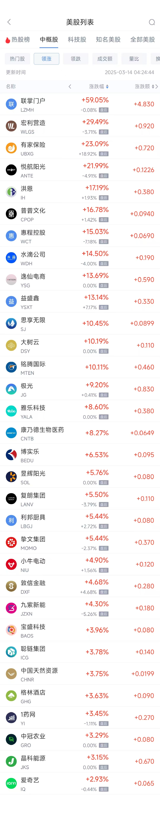 领涨中概股列表: