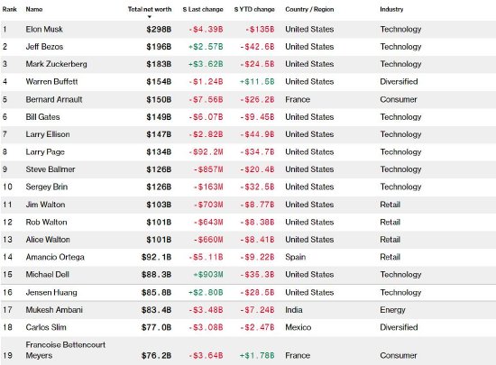 在前20大富豪中,巴菲特几乎是唯一一位今年财富保持增长的,除了欧莱雅继承人弗朗索瓦丝·贝当古·梅耶尔 之外。