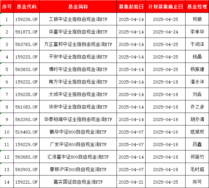 回顾此前,已经有2月份成立的国泰基金、华夏基金旗下自由现金流ETF,还有4月初成立的易方达、银华基金自由现金流ETF四只产品成立或上市。